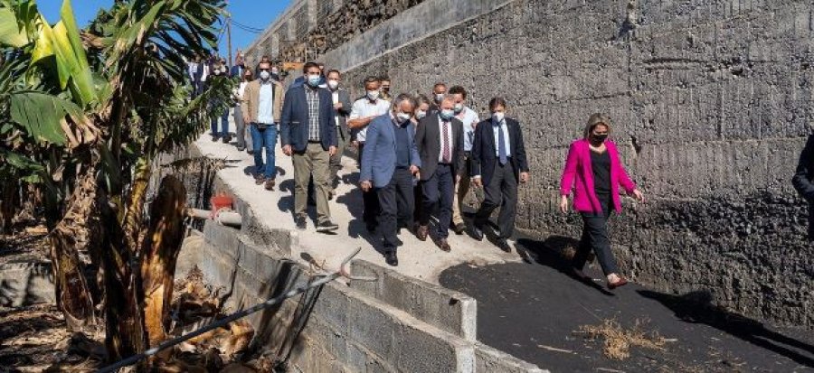 El presidente de Canarias, Ángel Víctor Torres, realizó este jueves (13 de enero de 2022) una nueva visita a la isla de La Palma, a la zona afectada por la erupción del volcán de Cumbre Vieja, acompañado, entre otras autoridades, por el ministro de Agricultura, Pesca y Alimentación, Luis Planas, y el comisario europeo de Agricultura y Desarrollo Rural, Janusz Wojciechowski. En esta jornada, se ha analizado el impacto de la emergencia volcánica en el sector primario de la comarca del Valle de Aridane, se han visitado fincas destruidas por las coladas y dañadas por la ceniza, principalmente, y se ha realizado un intercambio de impresiones con los representantes agrarios y pesqueros de la Isla Bonita.