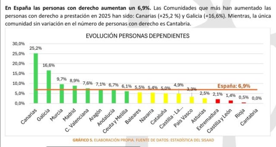 Canarias es, de nuevo, la Comunidad Autónoma en la que más han aumentado las personas beneficiarias con prestación y las personas con derecho