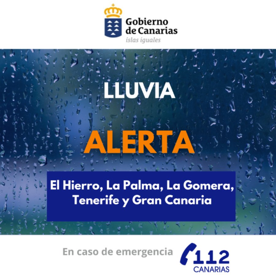 El Gobierno de Canarias, a través de la Dirección General de Emergencias, actualiza la situación y mantiene la alerta por lluvia en las islas de El Hierro, La Palma, La Gomera, Tenerife y Gran Canaria, a partir de las 13:00 horas de hoy martes, 24 de marzo. En las islas de Fuerteventura y Lanzarote se actualiza la situación manteniéndose la prealerta