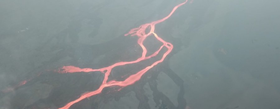En las últimas horas se ha observado un aumento en la tasa de emisión de lava desde el foco emisor de lava del flanco NO del cono principal. La colada sigue con las mismas direcciones del último informe, rebosando en esta mañana algunos de los tubos y canales volcánicos preexistentes. Las coladas lávicas cuyos frentes se
