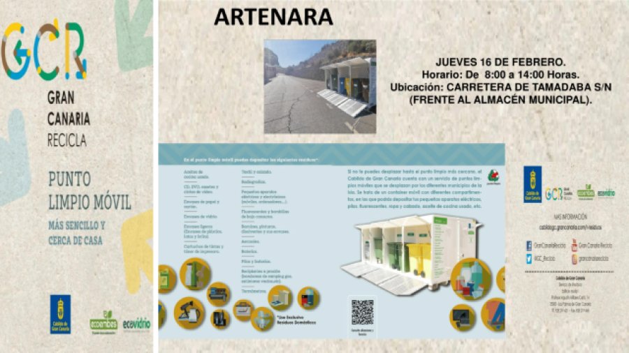Les informamos que el próximo Jueves 16 de Febrero, frente al Almacén Municipal estará ubicado el Punto Limpio Móvil para que puedas reciclar (Textil y calzado, Baterías, Pilas, Termómetros, Móviles, etc.)