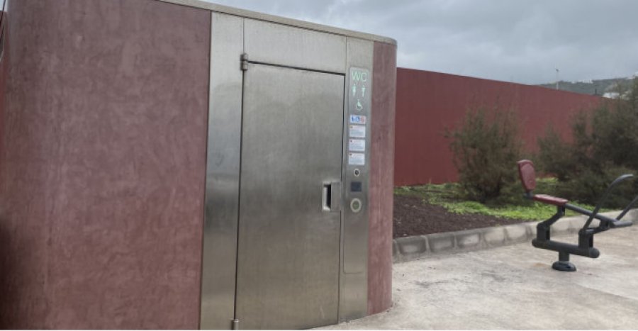 El aseo cuenta con acceso automático y conexiones a las redes de abastecimiento, saneamiento y eléctrica, así como mobiliario adaptado para todo tipo de usuarios y usuarias, incluidas personas con movilidad reducida (PMR).
