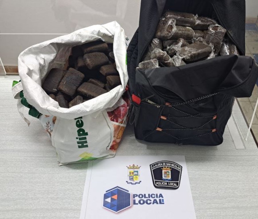 Sospechando que pudiera tratarse de objetos sustraídos, agentes de la Policía Local de La Aldea de San Nicolás se trasladaron al lugar reseñado, comprobando la existencia de una bolsa de supermercado y una mochila en cuyo interior se encontraron varios ladrillos pequeños, algunos de ellos empaquetados en film transparente que, por el olor que desprendía y por su forma, se identificó como la sustancia estupefaciente conocida como hachís.