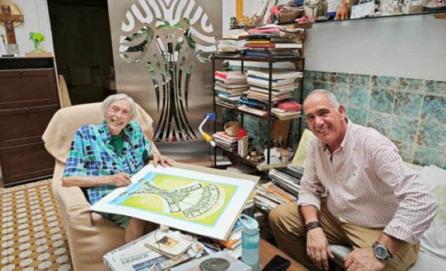 El artista norteño Pepe Dámaso, autor de la bandera y logotipo de la Mancomunidad del Norte de Gran Canaria, trasladó a Sergio Nuez, Presidente de esta entidad, en la reunión mantenida en la casa del pintor, su voluntad de colaborar en la celebración del cincuentenario de esta entidad supramunicipal a la que le unen sus orígenes norteños, como agaetense, además de las diversas colaboraciones que ha realizado a lo largo de su vida con la Mancomunidad desde el año 2002 en la que diseñó el logotipo del árbol sagrado, que tiene como base el drago.