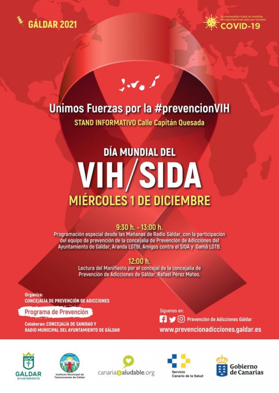 Un año más, el Equipo de Prevención dependiente de la Concejalía de Prevención de Adicciones del Ayuntamiento de Gáldar se suma a la celebración del Día Mundial de VIH/SIDA que se conmemora cada año el 1 de diciembre.
