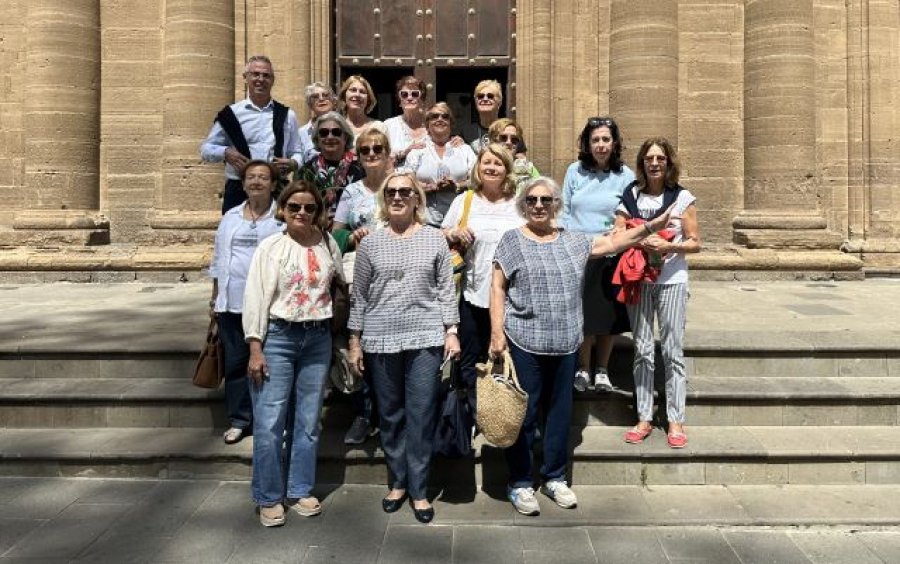 La concejala del Mayor, Dolores Delgado, y el edil de Relaciones Institucionales, Tine Martín, dieron la bienvenida en la mañana de este viernes a un grupo de usuarias de un gimnasio de la capital que visitaron el casco del municipio