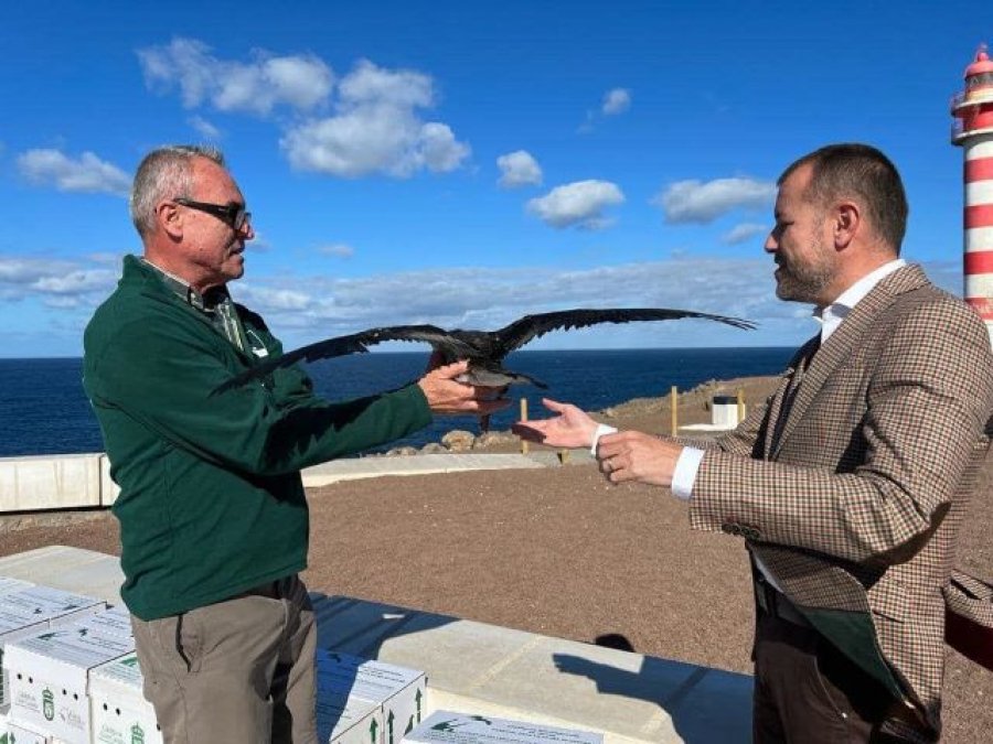 El alcalde de Gáldar, Teodoro Sosa, junto al responsable del Centro de Recuperación de Fauna Silvestre del Cabildo de Gran Canaria, Pascual Calabuig, asistieron este martes en la costa del Faro de Sardina de Gáldar a una suelta de pardelas cenicienta, sumándose con ello a la campaña que por estas fechas cada año lleva a cabo el Cabildo de Gran Canaria para devolver al mar a esta especie protegida.