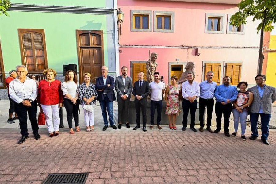 Teodoro Sosa, alcalde de la Ciudad; Encarnación Ruiz, coordinadora del proyecto y Fernando Silva, escultor, inauguraron el conjunto que presidirá una de las entradas principales a la Ciudad. “Vamos a tener las dos entradas que históricamente hemos tenido con lo que nos tiene que representar: nuestros orígenes, nuestra tierra, nuestros antepasados. Por un lado las de la Bajada de las Guayarminas y ahora estas de la calle Guaires, y ambas entradas con un gran aparcamiento”, aseguró el primer edil.