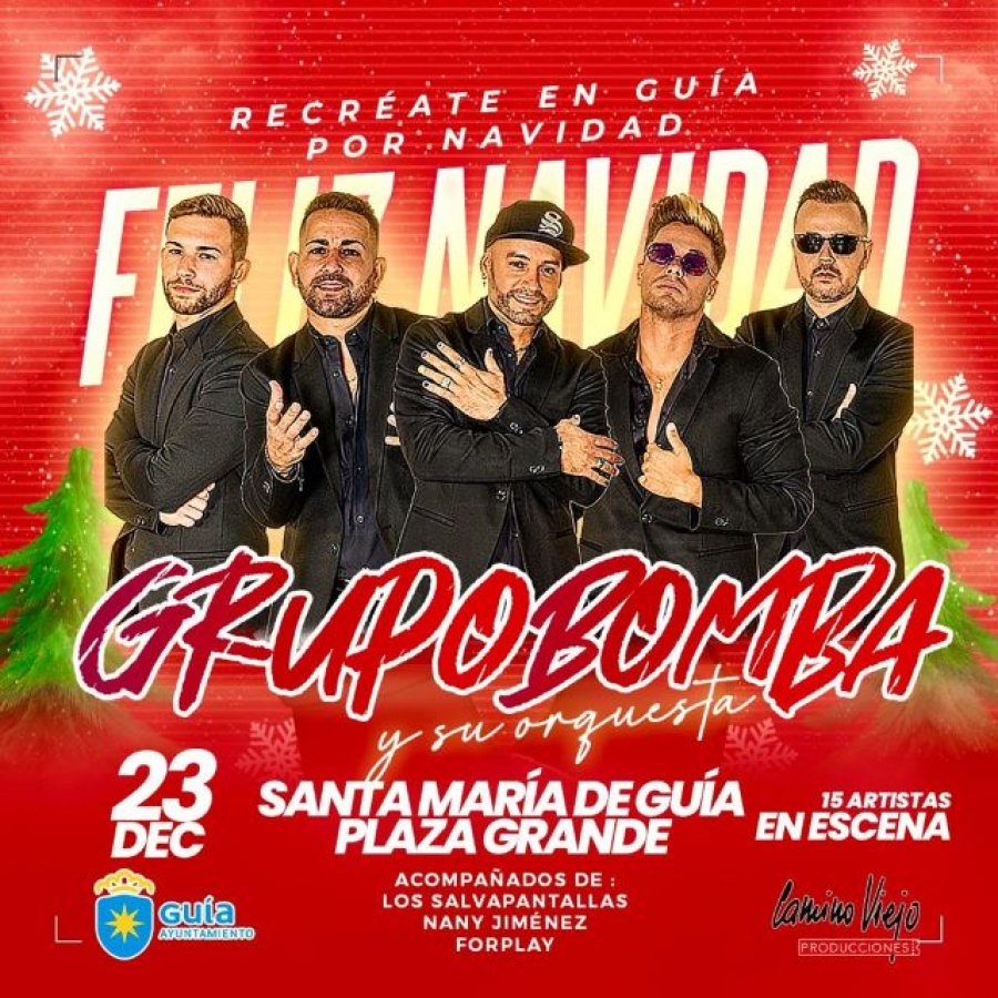 Con los conciertos de ‘Los Salvapantallas’, el ‘Grupo Bomba’ ‘For Play’ y ‘Nany Jiménez’ arrancan este viernes los actos festivos de este fin de semana en Guía. Más de 15 artistas en escena formarán parte de este gran espectáculo musical que se celebrará a partir de las 20:00 horas, en la Plaza Grande, dentro la tercera edición del Recréate en Guía por Navidad.