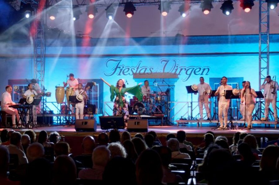 Éxito y lleno absoluto en la Plaza Grande de Guía para disfrutar del concierto tributo a Gloria Estefan celebrado este miércoles en el marco de las fiestas patronales del municipio. En la voz de la cantante Natalia Palacios, acompañada por una magnífica banda de músicos, el espectáculo ‘Oye Mi Canto’ inundó de ritmo la noche festiva con los temas más conocidos de la artista cubana.