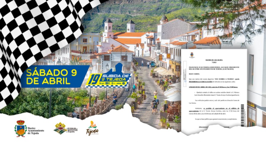 Que con motivo del evento deportivo “IXX SUBIDA A TEJEDA”, queda PROHIBIDA LA CIRCULACIÓN de vehículos durante el SÁBADO 09 DE ABRIL DE 2022, entre las 07:00 horas y las 17:00 horas en las siguientes calles: