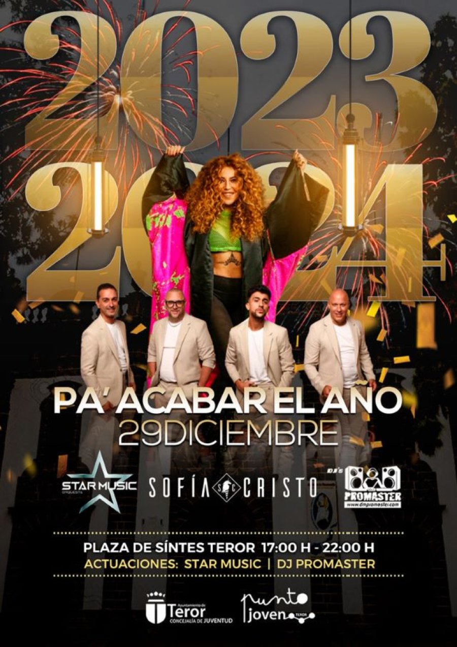 La concejalía de Juventud del Ayuntamiento de Teror ha preparado para este viernes 29 de diciembre una gran Fiesta ‘Pa’ acabar el año′ para que la población joven y no tan joven del municipio pase una de las noches más espectaculares del año.