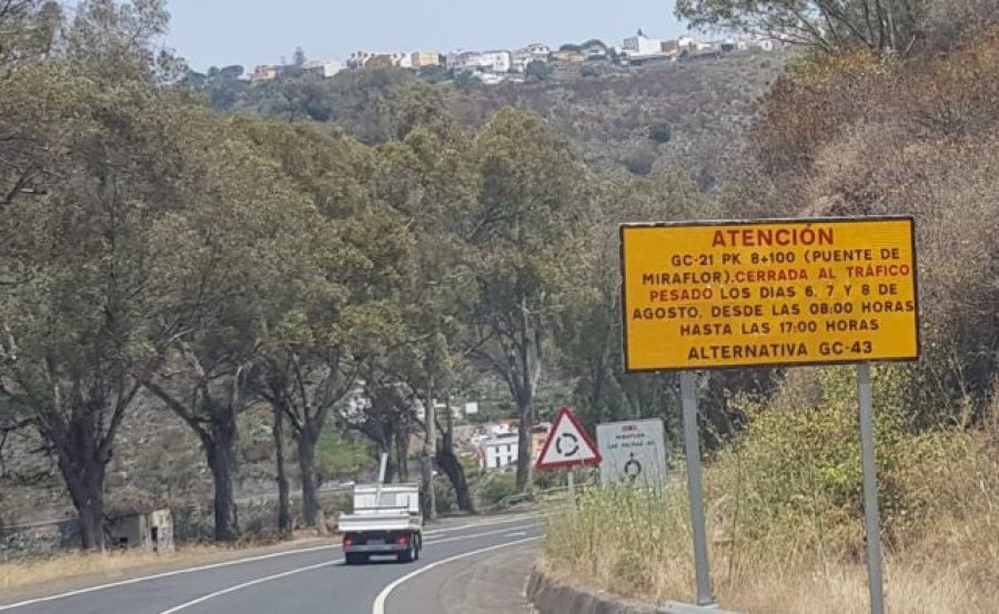 El Puente de Miraflor, en la carretera GC-21, permanecerá cerrado al tráfico de vehículos pesados del miércoles 6 de agosto al viernes 8 de agosto, en horario de 8:00 a 17:00 horas
