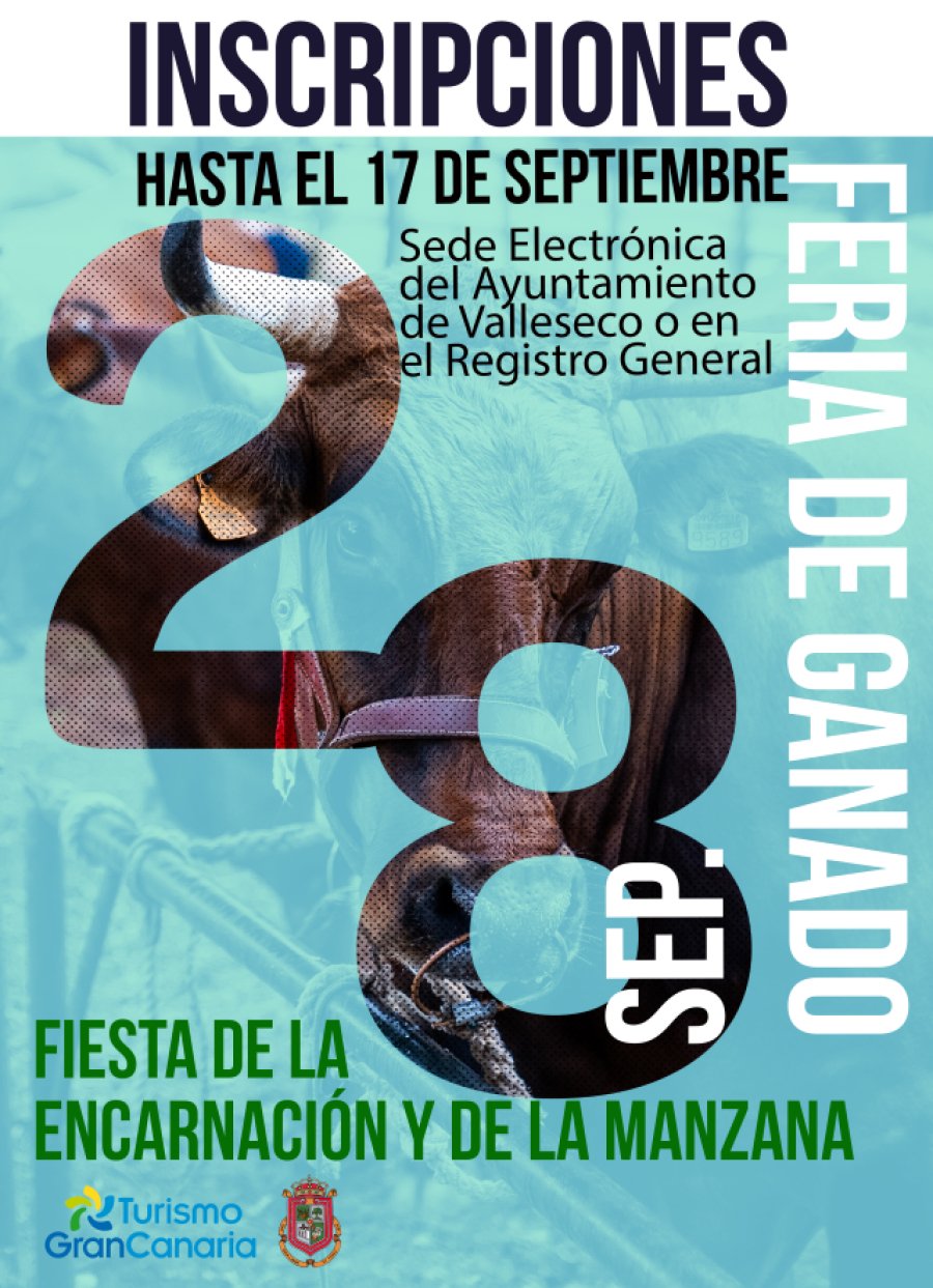 La Concejalía de Sector Primario, dirigida por Pacuco Rodríguez Vega, tiene abierto el plazo de inscripción para participar en la Feria de Ganado de La Manzana 2025, que se celebrará el domingo 28 de septiembre en el paraje del Área Recreativa de La Laguna, en Valleseco.