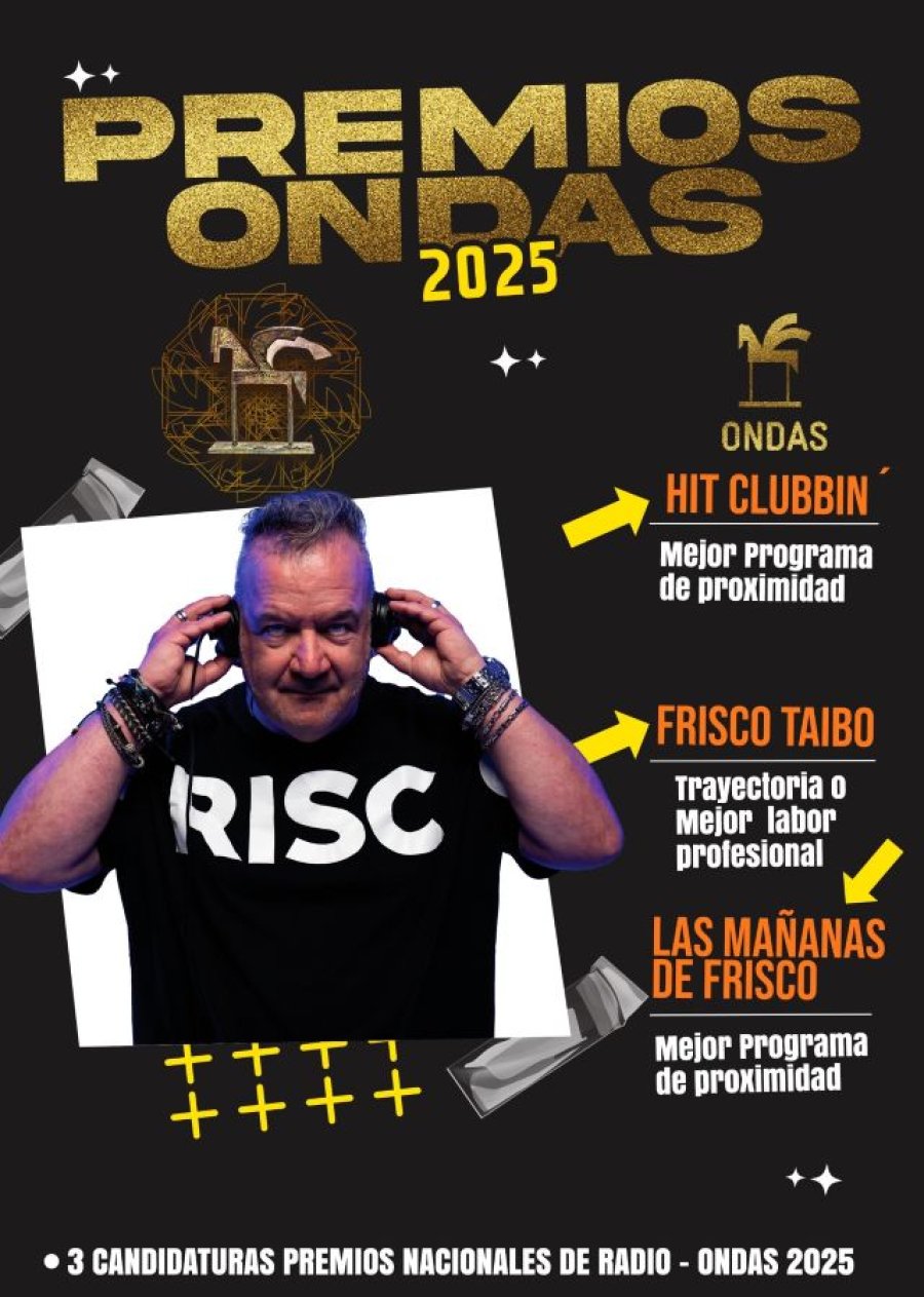 En esta ocasión con 3 candidaturas ,una con el programa "Las mañanas de Frisco" que se emite en Nova Hit otra con el programa multiemisora "Hit Clubbin´", donde ambos competirán en la categoría de "Mejor programa de proximidad" y una tercera candidatura en la que el propio Frisco Taibo tendrá opciones de llevarse el Ondas a "Trayectoria o mejor labor profesional"