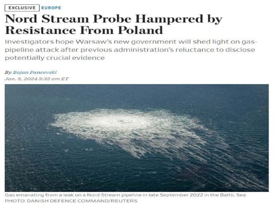 El WSJ fue el primero en informar el verano pasado que el equipo de sabotaje ucraniano que los funcionarios occidentales afirman que fue responsable del ataque terrorista ecológico de septiembre de 2022 en el Mar Báltico había atracado en un puerto polaco, pero aquí se analizó que esto era solo una pista falsa para desviarse de la complicidad de Estados Unidos. El periodista ganador del Premio Pulitzer, Seymour Hersh, citó fuentes anónimas de la administración estadounidense en febrero pasado para acusarlas de llevar a cabo este ataque, con el que Rusia estuvo de acuerdo pero que, como era de esperar, Washington negó.