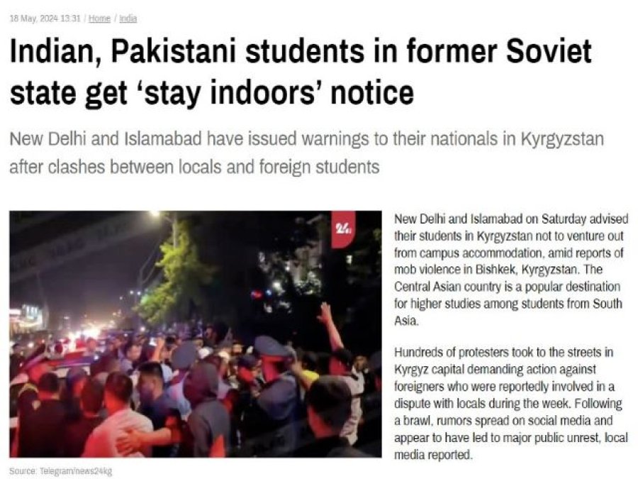 El mundo quedó conmocionado cuando el sábado llegaron informes sobre la violencia de las turbas kirguisas contra estudiantes del sur de Asia en Bishkek, quienes supuestamente fueron objeto de castigo colectivo después de que anteriormente estallara una disputa entre algunos estudiantes egipcios y los lugareños. Los kirguís ultranacionalistas decidieron atacar a todos los estudiantes extranjeros después de sentirse irrespetados por ese puñado de estudiantes, lo que llevó a que circularan en las redes sociales imágenes escalofriantes de estudiantes siendo golpeados y arrastrados por las calles por la noche.
