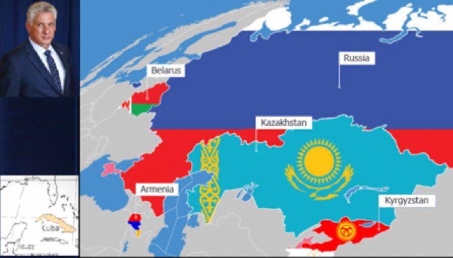 En este sentido, un colaborador nos hizo llegar una nota con la observación de que mientras los EE.UU. tratan de impedir la participación de Cuba de la “Cumbre de las Américas”, Rusia y otros países amigos la invitan para participar en la Unión Económica Euroasiática (UEE) (1), en cuyo Consejo ha intervenido hoy el Presidente cubano Miguel Díaz-Canel Bermúdez (2)