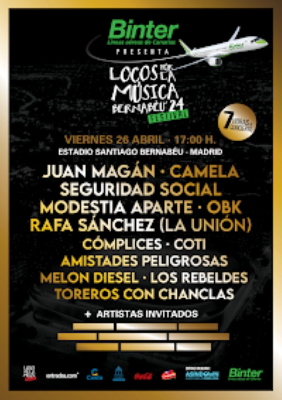 El próximo 26 de abril, a las 17:00h, el Estadio Santiago Bernabéu abrirá sus puertas para la celebración de Locos por la Música, el primer concierto después de la remodelación del recinto, que llega de la mano de la compañía aérea Binter.
