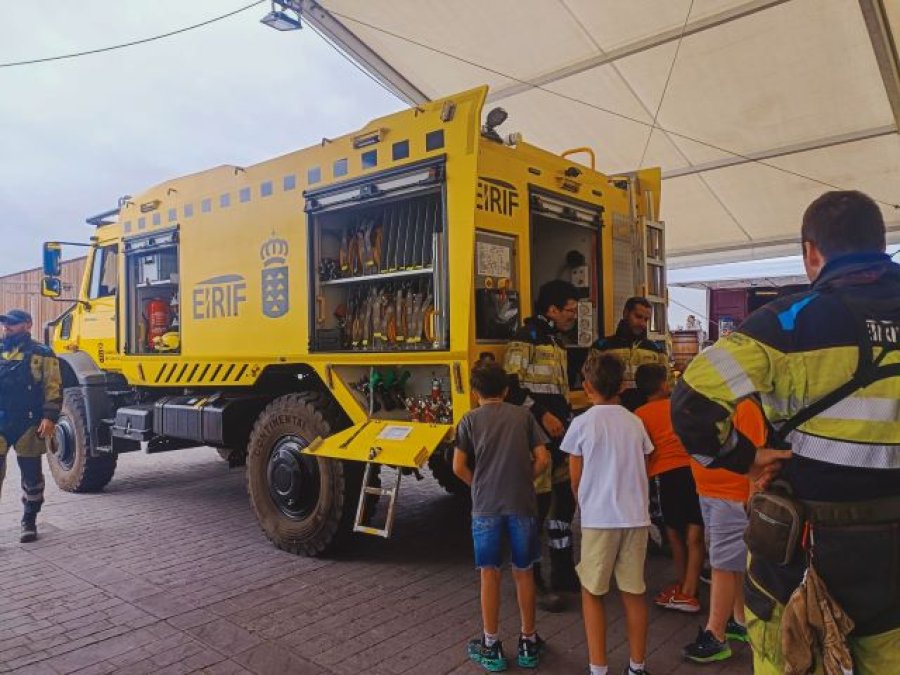 Los más de 70 jóvenes de entre 8 y 12 años que participan en este campus, gestionado por la asociación ‘Mojo La Palma’, pudieron además conocer los materiales con los que cuentan los equipos de cara a la extinción y prevención de fuegos.