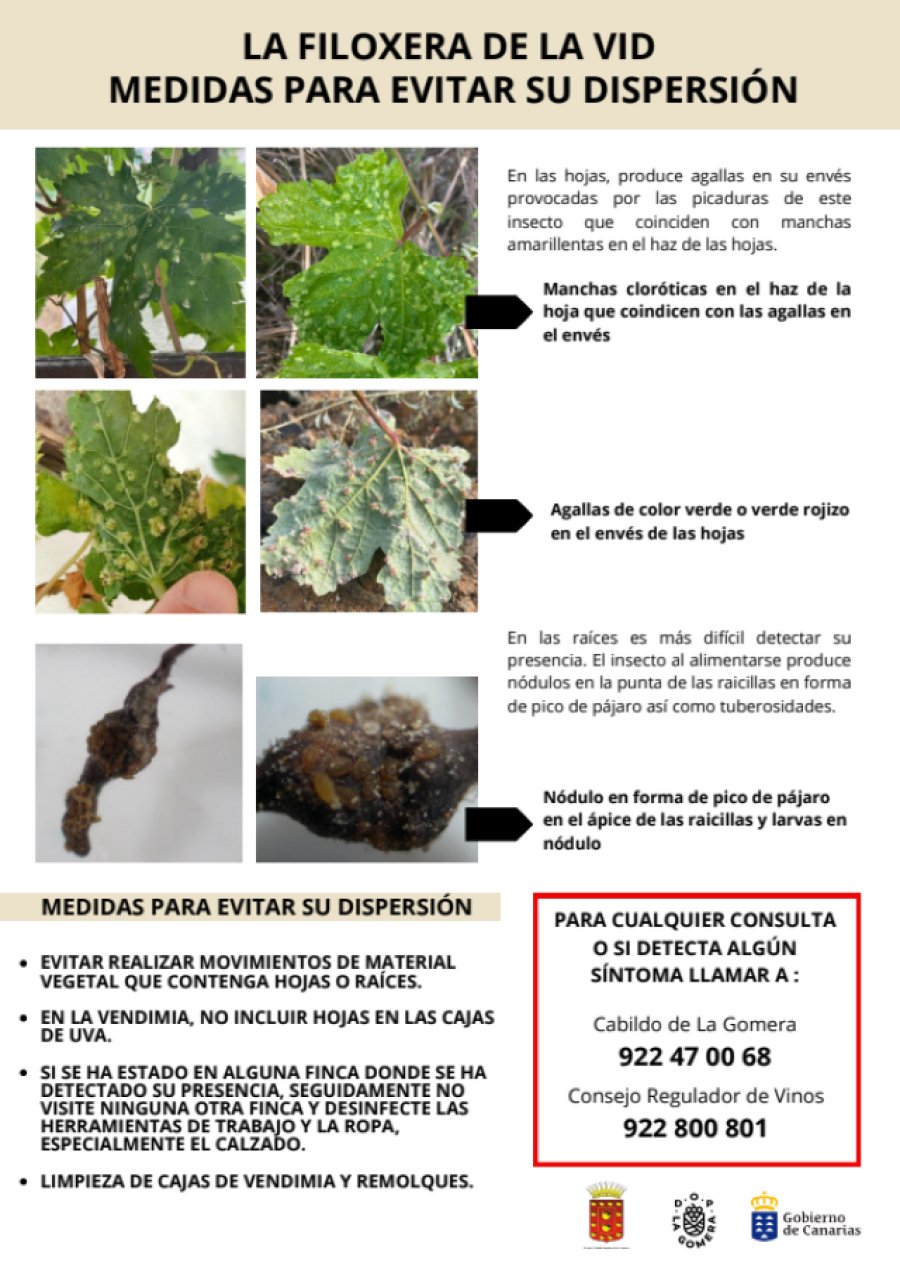 El Cabildo de La Gomera, a través del Área de Sector Primario, y el Consejo Regulador de la Denominación de Origen La Gomera, han puesto en marcha una campaña de difusión dirigida a viticultores y bodegas de la isla, tras la reciente detección de filoxera en viñedos de Tenerife.
