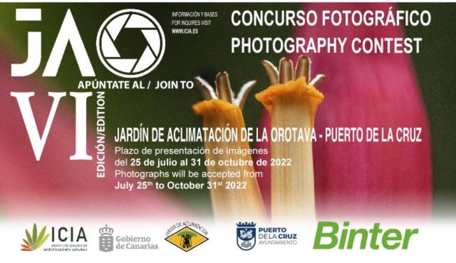 El Instituto Canario de Investigaciones Agrarias (ICIA), organismo dependiente de la Consejería de Agricultura, Ganadería y Pesca del Gobierno de Canarias, celebra la sexta edición del concurso de fotografía del Jardín de Aclimatación de La Orotava (JAO), popularmente conocido como Jardín Botánico de Puerto de la Cruz, con el objetivo de realzar la riqueza natural y científica que alberga este espacio catalogado como Bien de Interés Cultural con la categoría de Jardín Histórico.