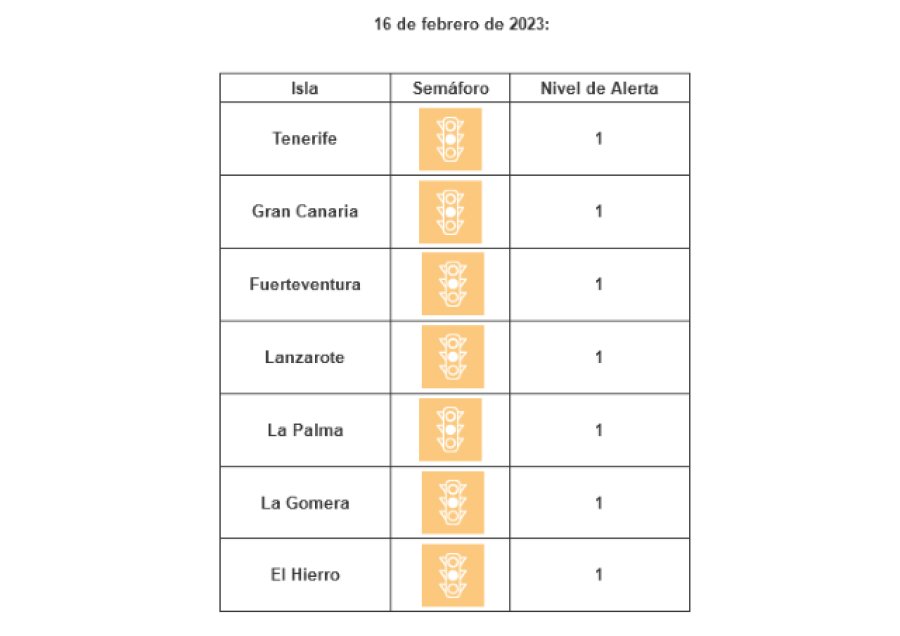 Según este informe, todas las islas se sitúan en riesgo sanitario de circulación controlada, el más bajo de la catalogación, siendo la primera vez que todas las islas presentan este nivel en todos sus indicadores tanto de presión hospitalaria como de transmisión comunitaria por covid-19.