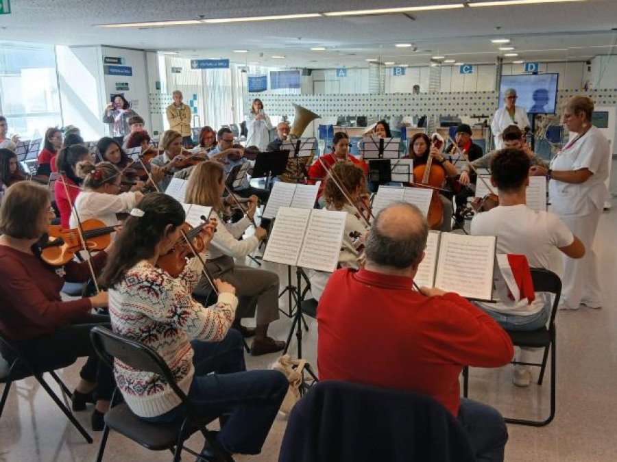 Dirigidos por la enfermera de Litotricia del HUC, Silvia Alonso, estos músicos alegraron la mañana en el centro hospitalario con temas como Viva la vida de Cold Play, Sweet Caroline de Neil Diamond o Mama Mia de Abba, entre otros. Además regalaron a los asistentes una selección de villancicos, entre los que se encontraba Navidades Blancas y Lo Divino.