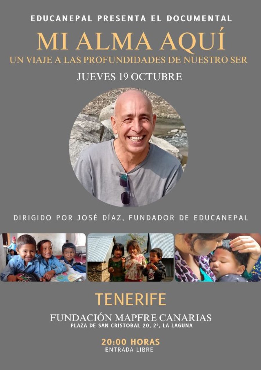 La Organización No Gubernamental (ONG) canaria Educanepal presenta un nuevo documental, “Mi alma aquí”, dirigido por el fundador de la organización José Díaz, quien ha querido plasmar en él “el día a día de Educanepal, ONG declarada de utilidad pública, que desde hace más de 20 años desarrolla su actividad en Nepal. En concreto, impulsa proyectos con el objetivo de prevenir el tráfico y la explotación laboral y sexual de los menores en las aldeas remotas del país asiático”.