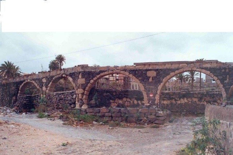 Por otro lado, venimos a DENUNCIAR EL ATENTADO AL PATRIMONIO HISTÓRICO DE TELDE. Estas obras han requerido el uso de maquinaria pesada, tanto de camiones como de tractores y otros, sometiendo a peligrosas vibraciones el bien a proteger. El ancho de los vehículos no estaba dimensionado con el arco del acueducto existente en la zona del cauce del barranco. Un acueducto que según la carta de la FEDAC es del siglo XVIII, por tanto, el más antiguo de Telde.