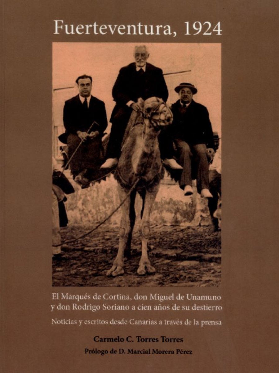 ‘Fuerteventura, 1924. El Marqués de Cortina, don Miguel de Unamuno y don Rodrigo Soriano a cien años de su destierro. Noticias y escritos desde Canarias a través de la prensa’ es una publicación editada con el apoyo de una subvención del Cabildo de Fuerteventura, pero distribuida con el esfuerzo personal del autor, Carmelo C. Torres, profesor e investigador de la isla, conocido por la publicación de exitosos trabajos anteriores, como el referido al Muelle de Gran Tarajal.