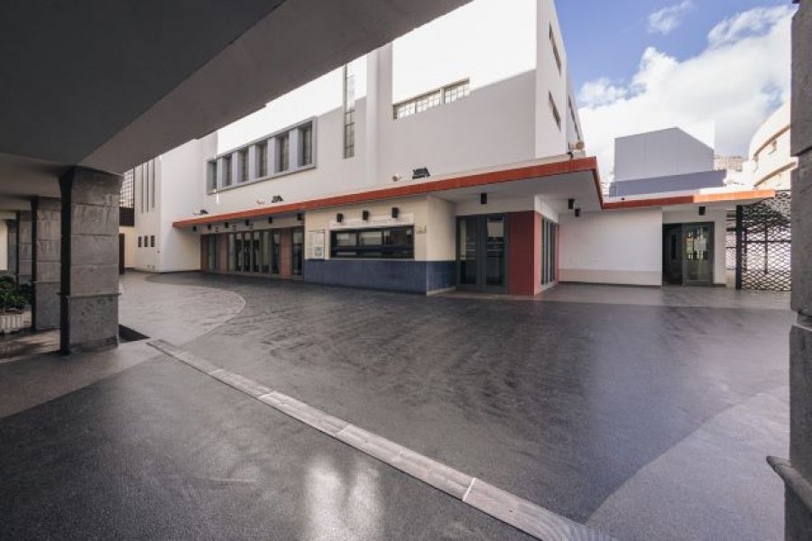 El Patio del Teatro Cuyás luce ya nueva imagen tras la culminación de la gran obra para la impermeabilización de su pavimento llevada a cabo durante estos meses de verano