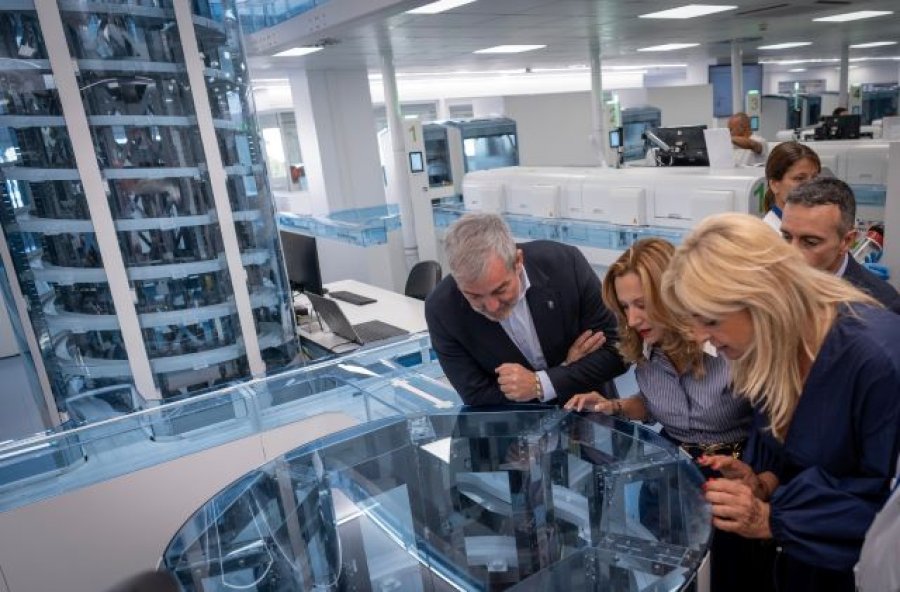 En la visita al laboratorio, Clavijo estuvo acompañado por la consejera de Sanidad, Esther Monzón, el director del Servicio Canario de la Salud, Carlos Díaz y la presidenta del Cabildo de Tenerife, Rosa Dávila, en la que pudieron comprobar el funcionamiento del sistema.