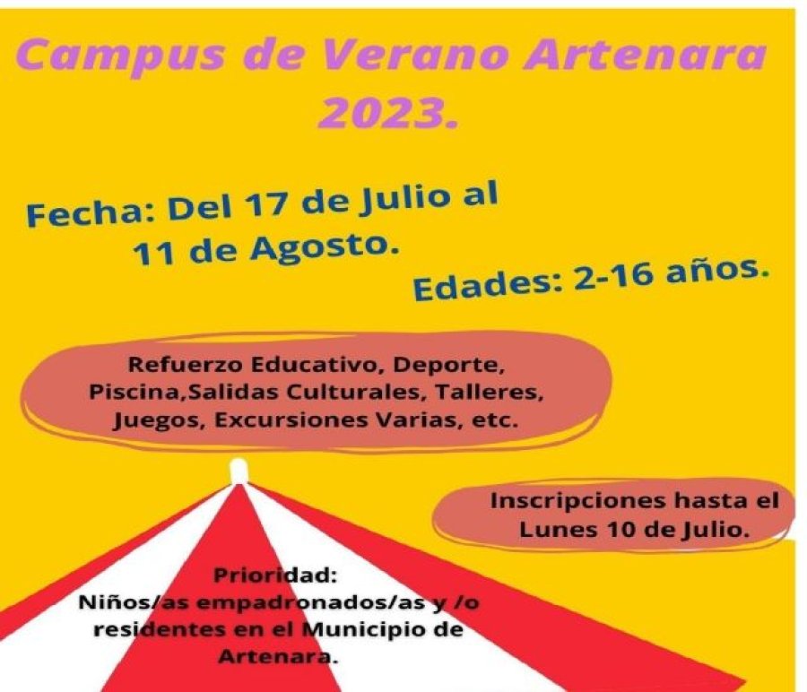 Del Lunes 17 de Julio al Viernes 11 de Agosto se va a realizar el Campus de Verano (Refuerzo Educativo, Talleres, Deporte, Excursiones, Salidas Culturales, etc.)