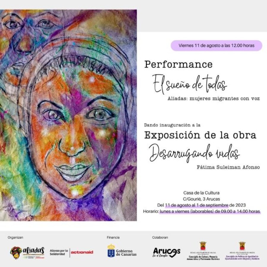 Las Concejalías de Cultura – Patrimonio Histórico y la Concejalía de Políticas de Igualdad del Excmo. Ayuntamiento de Arucas, acogerán el trabajo realizado por el grupo “Aliadas: mujeres migrantes con voz”, a través de un proyecto de Alianza por la Solidaridad financiado por el Gobierno de Canarias.