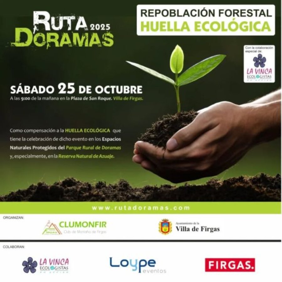 Por décimo séptimo año consecutivo, y como compensación a la HUELLA ECOLÓGICA de la carrera por montaña RUTA DORAMAS - Trofeo Loype en los Espacios Naturales Protegidos del Parque Rural de Doramas y especialmente, en la Reserva Natural Especial de Azuaje, se llevará a cabo por parte del Club de Montaña de Firgas - CLUMONFIR, organizadores de la Ruta Doramas, una repoblación forestal con especies de Monteverde y Termófilo en la ladera oeste de la Montaña de Firgas, en el lugar conocido como Llano de la Majada, contando con la colaboración del colectivo La Vinca Ecologistas en Acción y el Ayuntamiento de la Villa de Firgas, entidad esta última que se encargará de ceder el agua para el riego de las plantas de acebuche, lentisco, dragos y fayas a repoblar