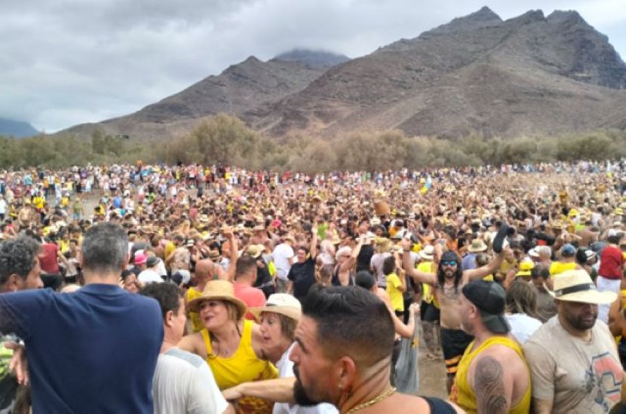 El día comenzó con la salida caminando desde el casco histórico para llegar alrededor de las 12.00 horas a la Playa de La Aldea, donde la Banda de Agaete acompañada por los asistentes se desplazó hasta el muelle para bailar durante dos horas. No faltaron el mítico tema de la Rama o el ya tradicional Soy Aldeano, con los que se abrió boca para El Charco.