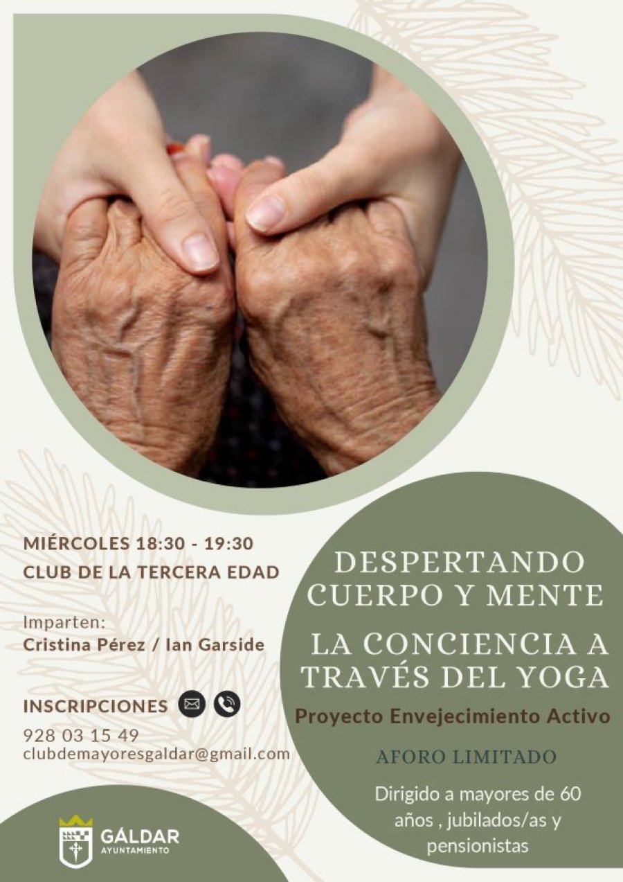La Concejalía del Mayor del Ayuntamiento de Gáldar, dirigida por Dolores Delgado Jorge, informa que desde el Proyecto 'Envejecimiento Activo' pone en marcha el taller 'Despertando Cuerpo y Mente - La conciencia a través del Yoga'