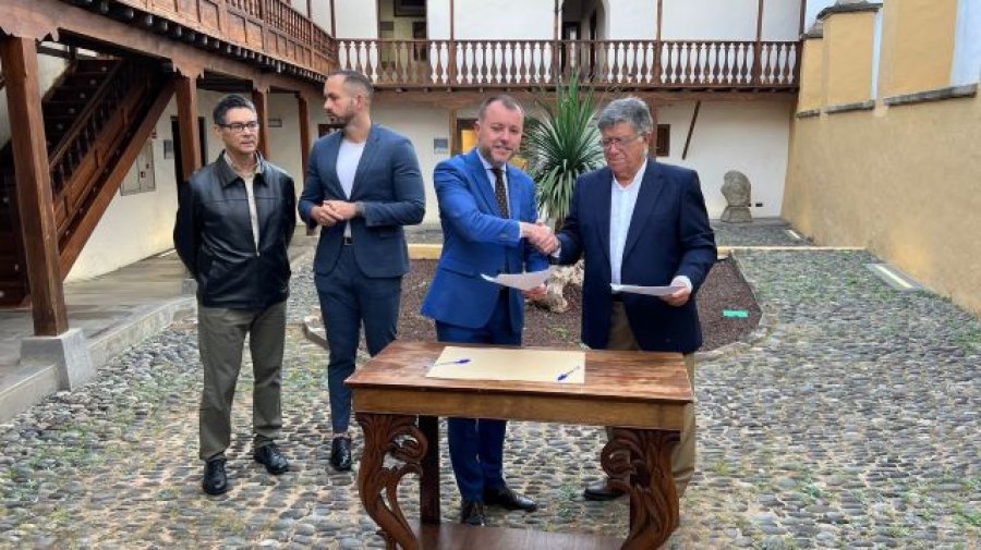 Teodoro Sosa, alcalde de la ciudad; Julio Mateo Castillo, concejal de Cultura y Fiestas; Juan Sebastián López García, director insular de Patrimonio Histórico y el propio Máximo Riol estuvieron presentes en la firma de la donación que tuvo lugar este jueves en el Museo Agáldar. "Es un placer recibir seis obras de arte sacro en esta Casa del Capitán Quesada, que es el mejor acogimiento que le podemos hacer a la obra de Máximo Riol. Es una generosa donación que se incorporan de forma momentánea al Museo Agáldar pero esperamos que en el futuro se puedan incorporar al Museo de Arte Sacro en una posible ampliación o redistribución", explicó Julio Mateo Castillo, que recordó que el negativo de la primera obra donada al Museo de Arte Sacro fue entregada posteriormente a Machico para estrechar lazos de hermanamiento con dicha ciudad de Madeira.