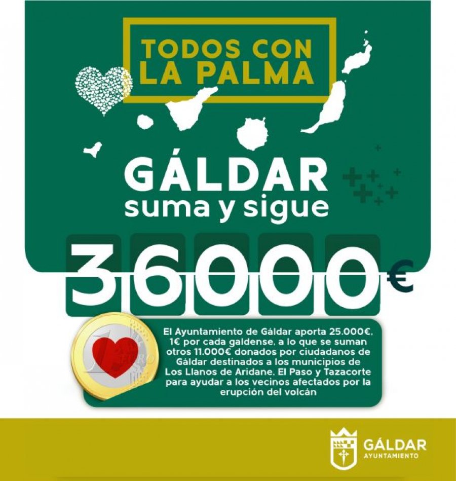El municipio de Gáldar se ha sumado a las muestras de solidaridad hacia las familias que se han visto afectadas por la lava del volcán en la isla de La Palma y ha destinado un total de 36.000 euros a los tres municipios más afectados: Los Llanos de Aridane, El Paso y Tazacorte.