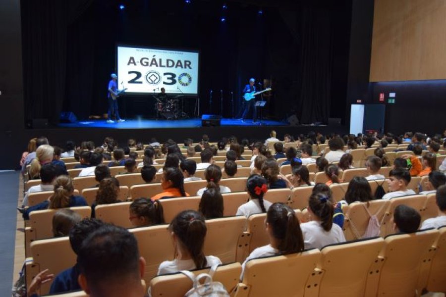 El proyecto educativo multidisciplinar Agáldar 2030 que difunde el patrimonio cultural de Canarias entre los centros escolares del municipio ha concluido en la mañana de este jueves con un evento en el Centro Cultural Guaires que ha sido conducido por el cantautor Heriberto Cruz