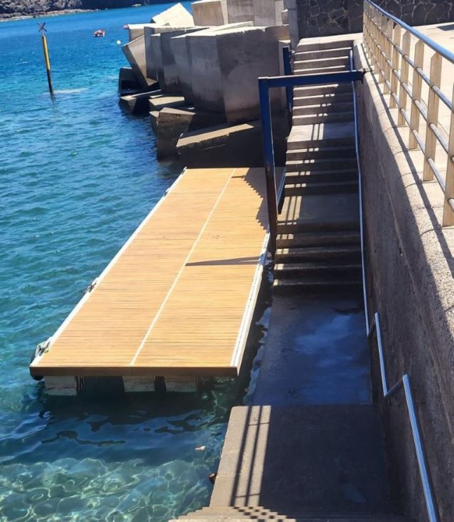 Tras la autorización de esta nueva obra por parte del ente público Puertos Canarios del Gobierno de Canarias, el Consistorio ha encargado a la empresa Servi Rain Canarias la construcción de este pantalán que ocupa doce metros de largo y tres de ancho.