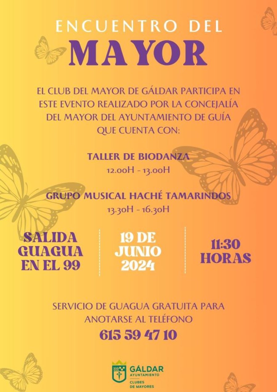La Concejalía de Clubes de Mayores del Ayuntamiento de Gáldar, que dirige Antonio María Benítez Melián, participará en el Encuentro del Mayor del Ayuntamiento de Guía que tendrá lugar el miércoles 19 de junio en la Plaza de La Atalaya