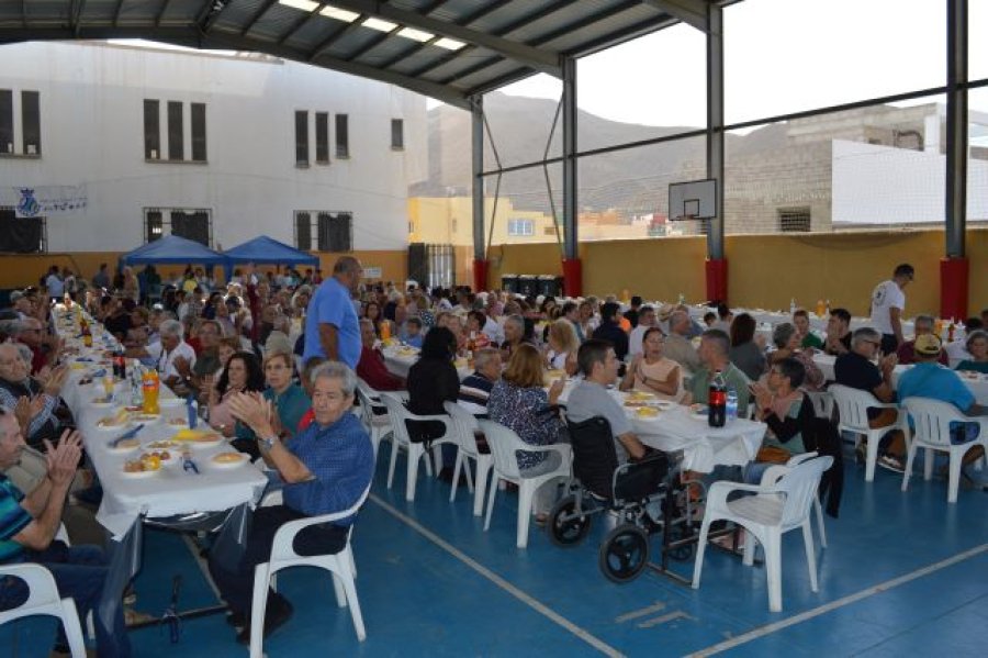 Dicho encuentro se celebró en la Cancha Deportiva, insertada dentro de lo que se conoce como el Complejo Barrial, que acogió a más de cuatrocientas personas repartidas en cuatro generaciones, las cuales disfrutaron del rico y abundante menú diseñado por la Asociación de Vecinos, donde no faltó: Pan, alioli, mojos, papas arrugadas, huevos duros, tortilla de papas, garbanzada, pata asada, paella, helados y bebidas.