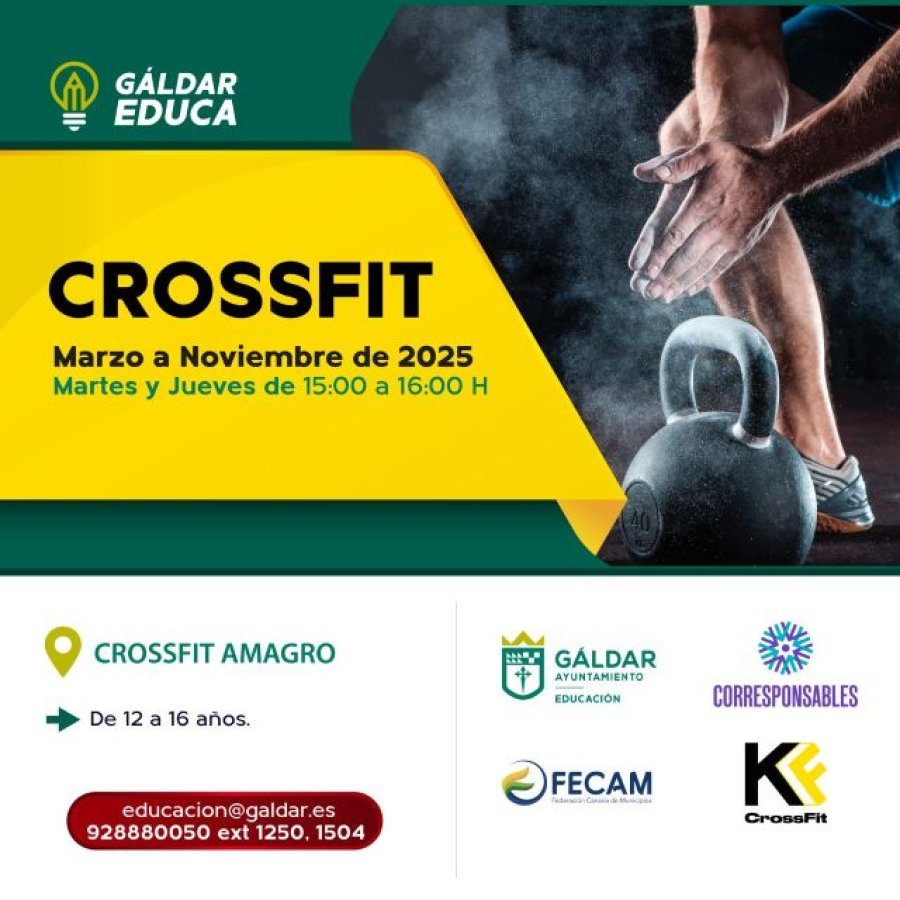 La Concejalía de Educación del Ayuntamiento de Gáldar comienza el próximo mes de marzo una actividad de crossfit que se prolongará hasta el mes de noviembre destinada a jóvenes de entre 12 a 16 años