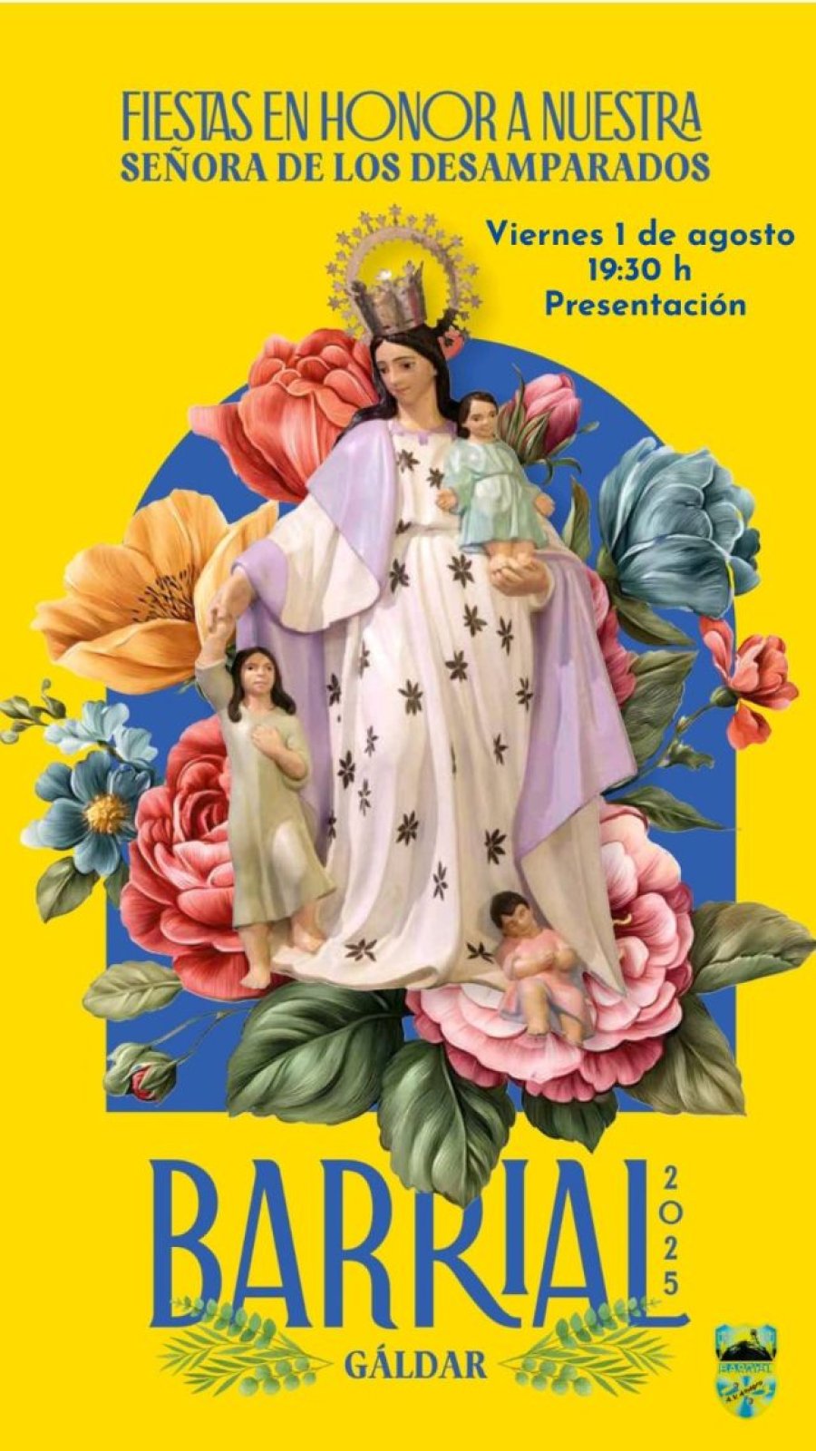 Este próximo viernes uno de agosto de 2025 a las 19:30 horas, se presentará en el salón de actos de la A.V. “Amagro” de Barrial, el programa de actos en honor a la patrona del barrio Nuestra Señora de Los Desamparados