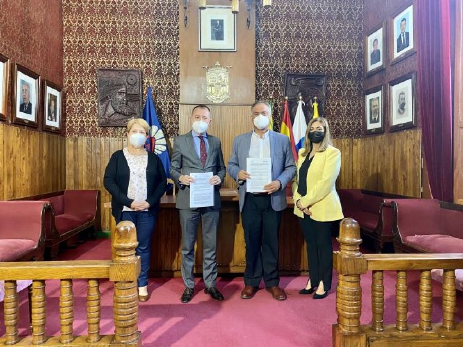 Fernando Cruz, Teodoro Sosa y Ana Mendoza sellaron el acuerdo en las instalaciones del Consistorio y tendrá una vigencia de dos años con posibilidad de prórroga