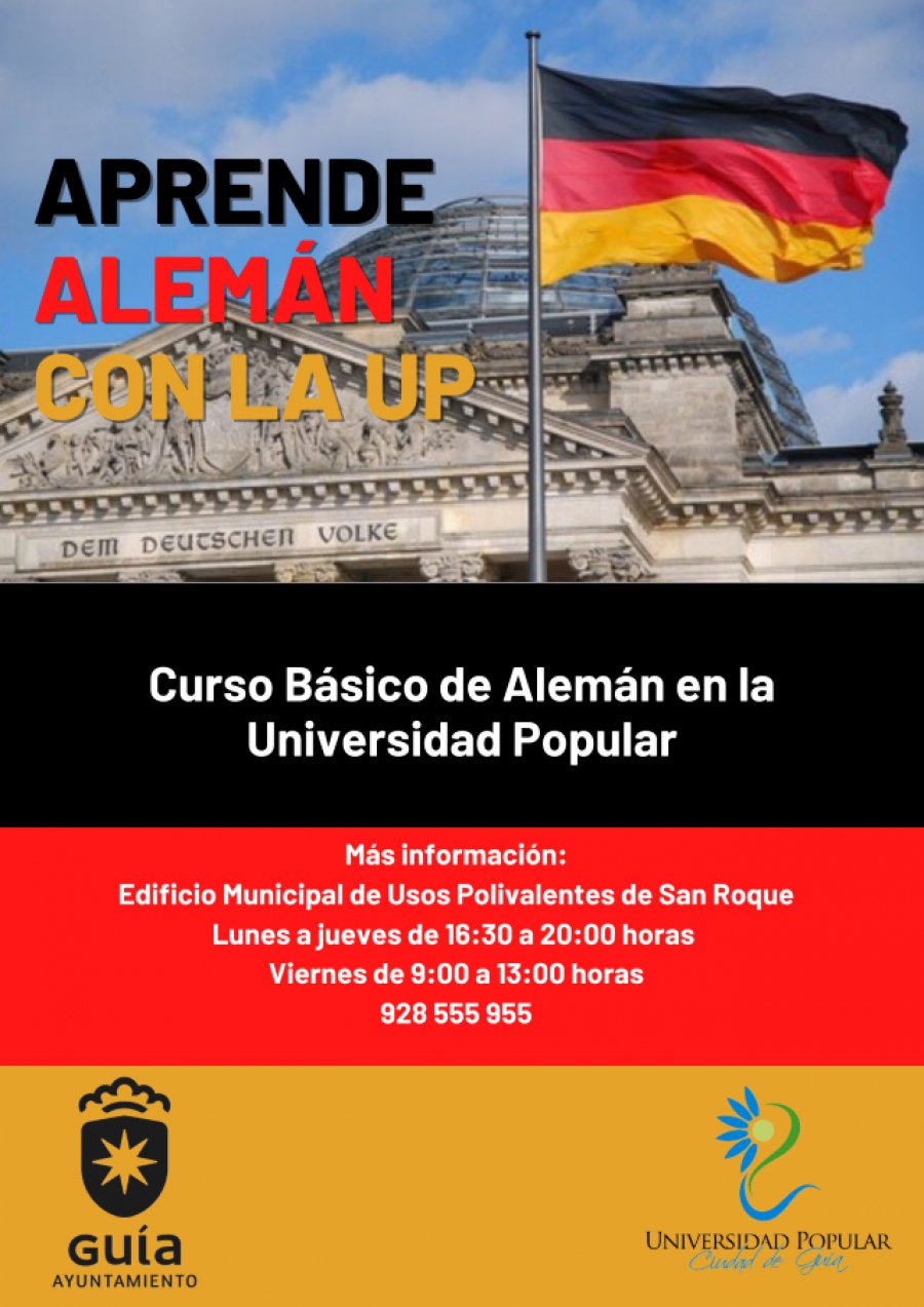 La Universidad Popular Ciudad de Guía abre la matrícula para un curso básico de Alemán, destinado a personas que comienzan desde cero con este idioma.