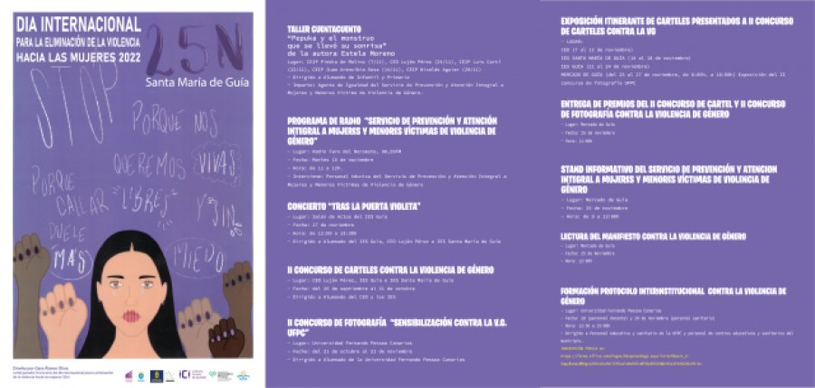 Para este 2022 se han convocado, además, el II Concurso de Carteles contra la Violencia de Género, dirigido al alumnado de secundaria del municipio, y el II Concurso de Fotografía ‘Sensibilización contra la Violencia de Genero-UFPC’ para los alumnos de la Universidad Fernando Pessoa Canarias.