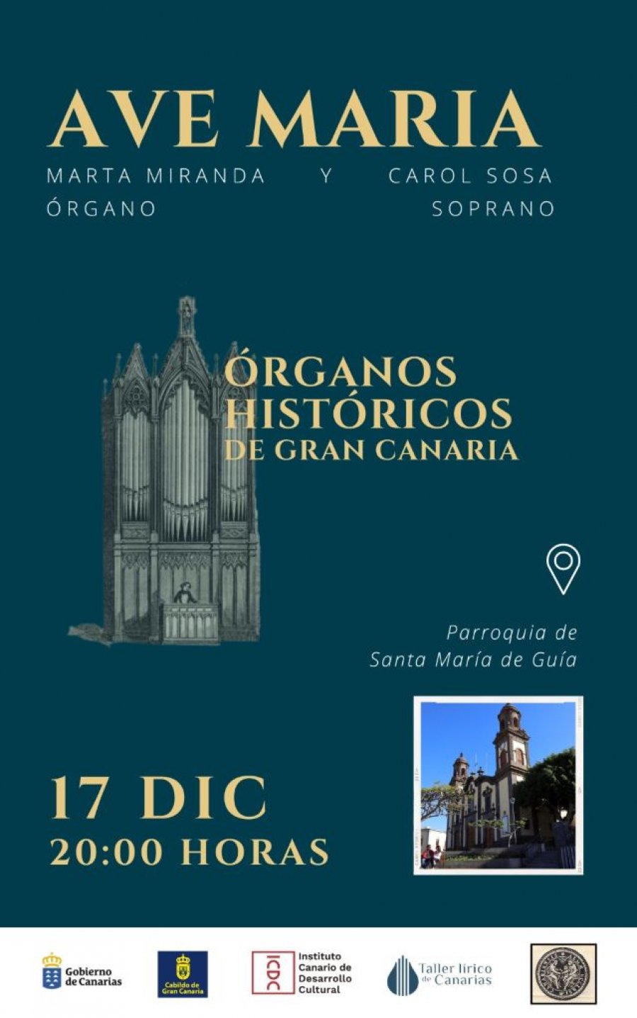 La Iglesia de Santa María de Guía acoge mañana sábado, a las 20:00 horas, el concierto ‘Ave María’ a cargo de la organista Marta Miranda a dúo con la soprano Carol Sosa. Esta actuación se enmarca dentro del programa de conciertos 'Órganos Históricos de Gran Canaria', con el que se pretende dar a conocer al público la riqueza y variedad de órganos que abarcan casi todo el territorio insular.